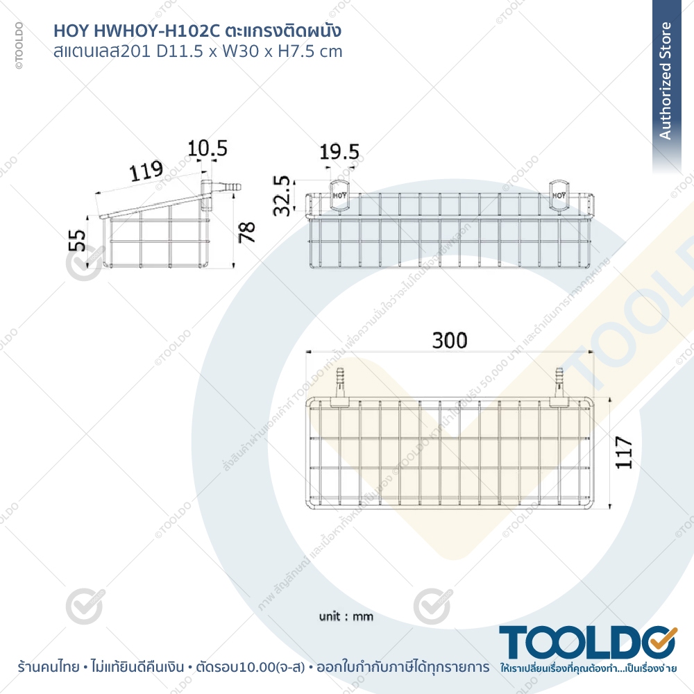HOY ตะแกรงวางของ ติดผนัง ชั้นวางของสเตนเลส 201 300mm HWHOY-H102C ติดผนัง ห้องน้ำ ห้องครัว ชั้นวางของเอนกประสงค์