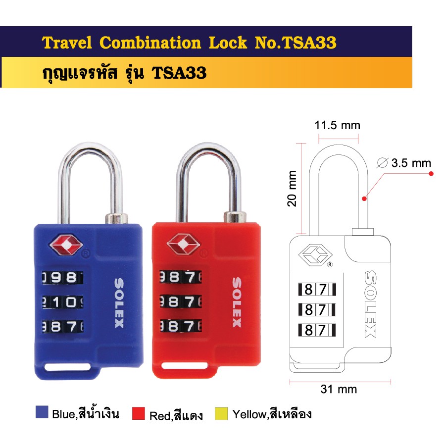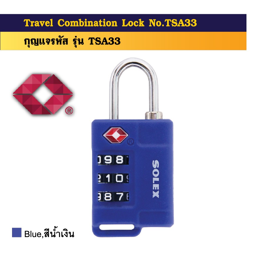 SOLEX กุญแจคล้องล็อคกระเป๋า รุ่น TSA 33 (กุญแจรหัส)