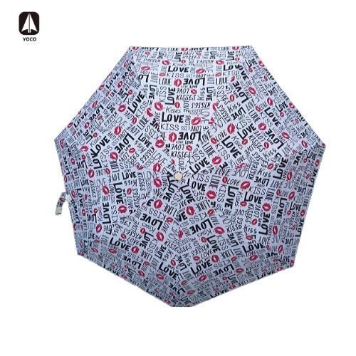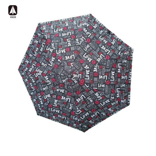 Yoco ร่มพับสามตอนกลมคันใหญ่ เคลือบกันยูวี ลายLove kiss