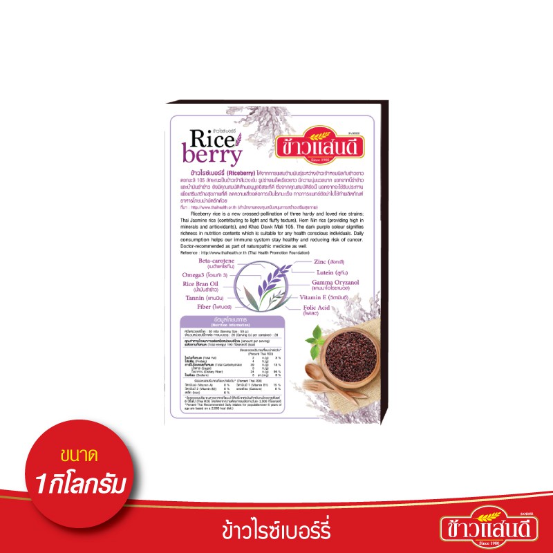 ข้าวแสนดี ข้าวไรซ์เบอร์รี่ 1 กก. จำนวน 5 กล่อง ข้าวเพื่อสุขภาพ