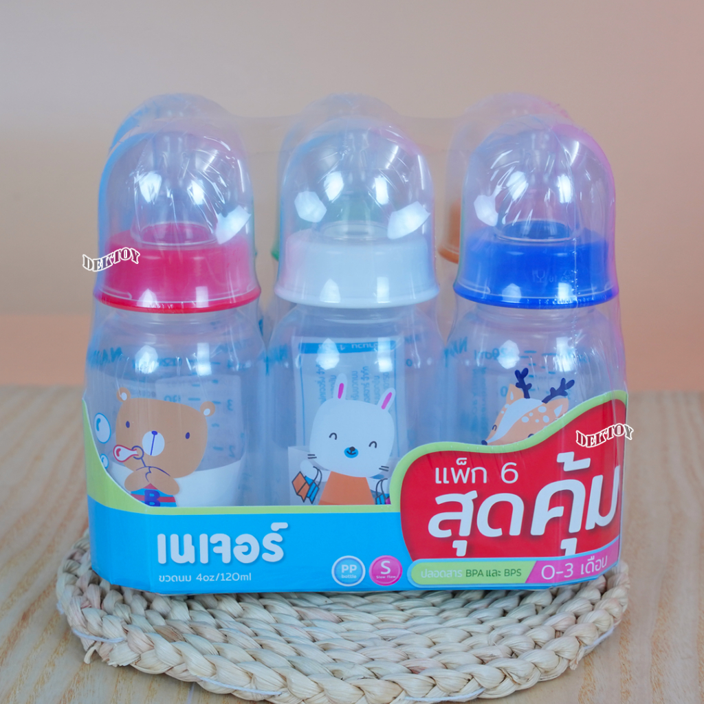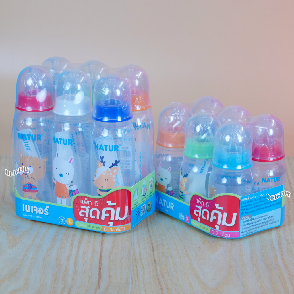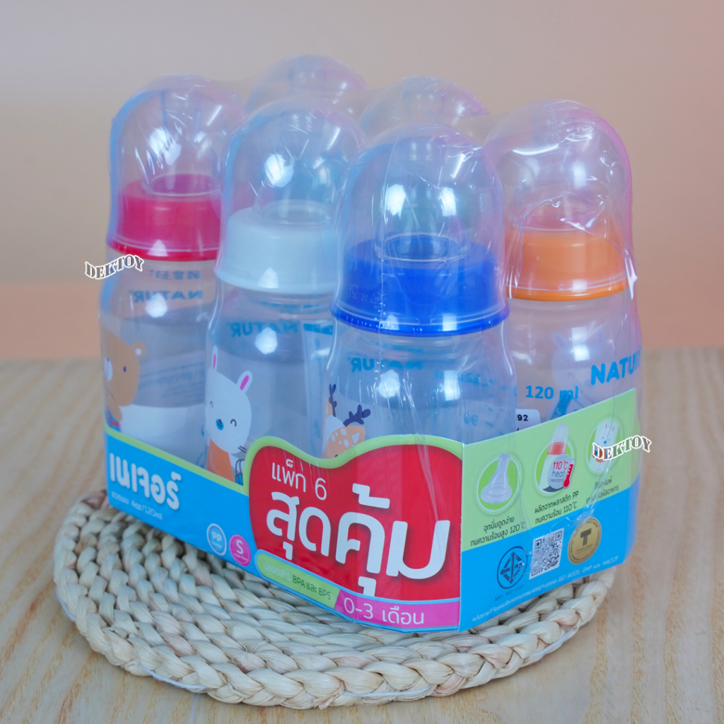 NATUR เนเจอร์ ขวดนมเนเจอร์ ทรงกลม 4และ 8 ออนซ์ แพ็ค3และ6ขวด