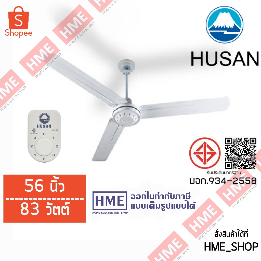 -#-HUSAN พัดลมเพดาน พัดลม แมลงปอ ขนาด 56˝ ขาว HME