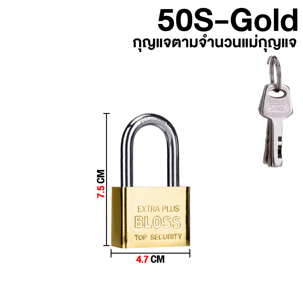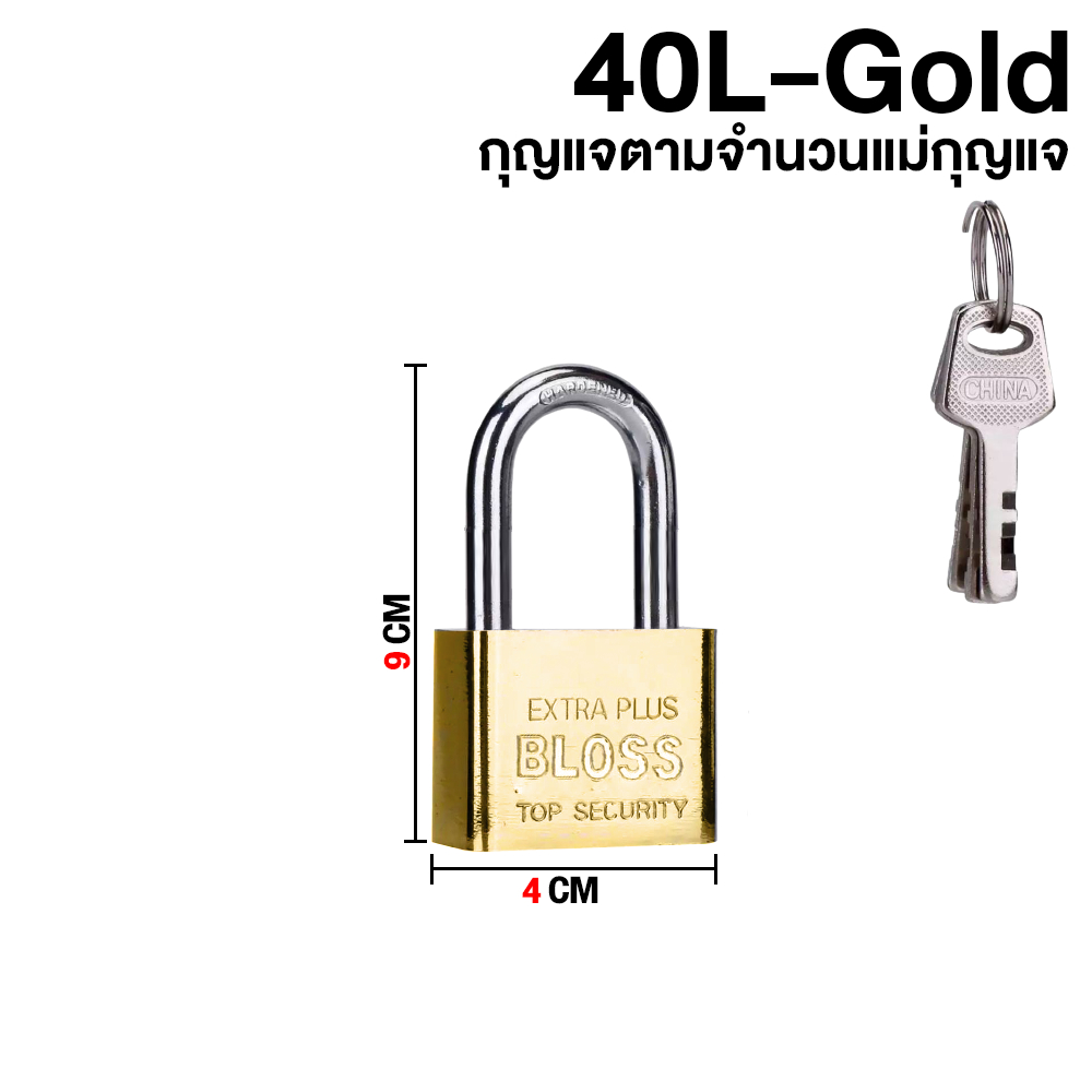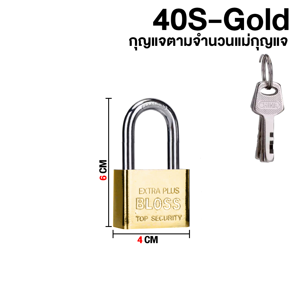 กุญแจ BLOSS แม่กุญแจล็อค พร้อมลูกกุญแจ 3 ดอก สีทอง 30mm 40mm 50mm ยาวและสั้น