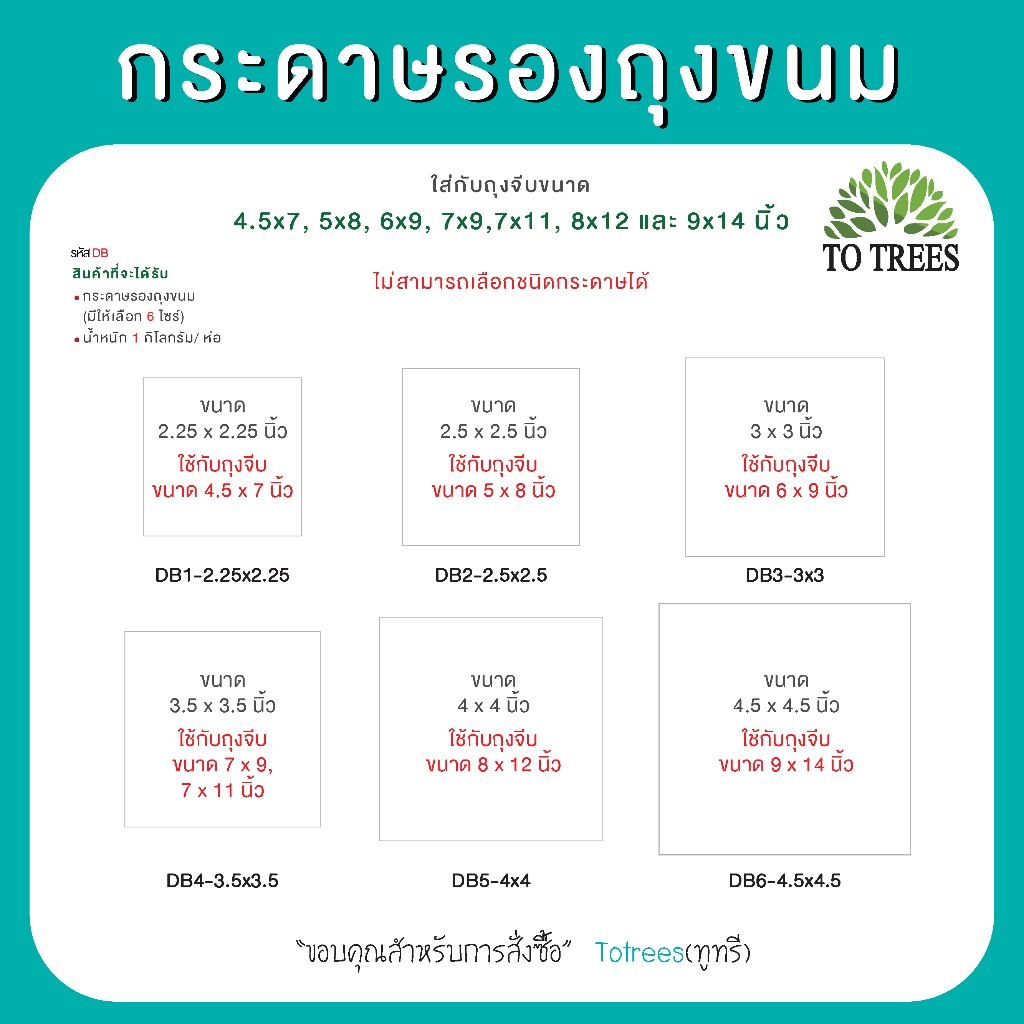 Totrees กระดาษรองก้นถุงจีบ กระดาษรองก้นถุงขนม บรรจุ 1 กิโลกรัม / ห่อ มีขนาดให้เลือก 6 ขนาด รหัส DB