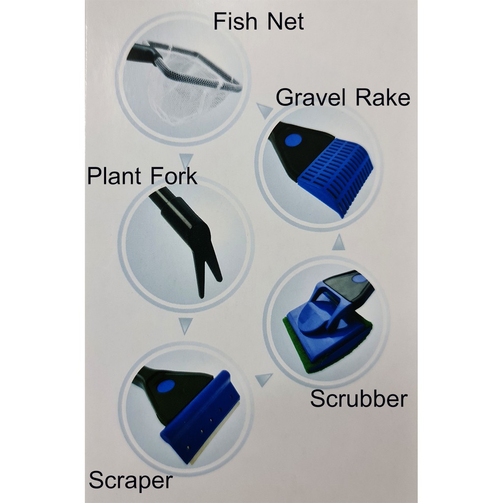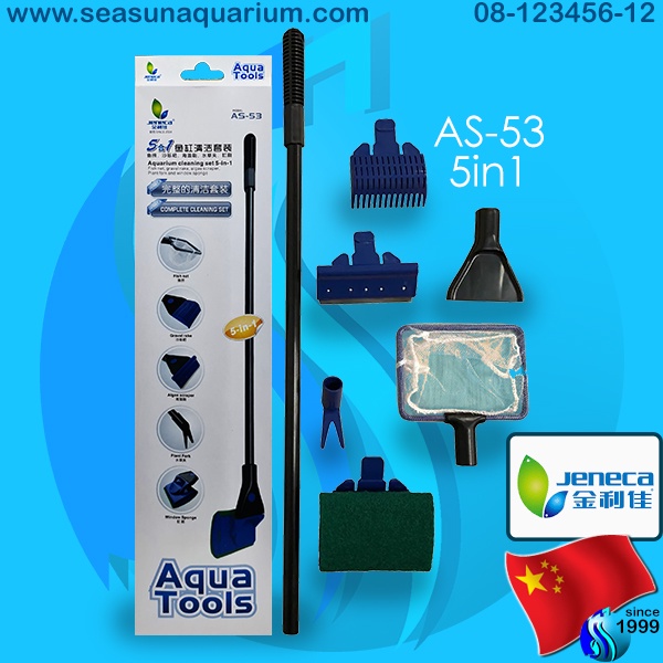 Jeneca Aqua Tools 5in1 AS-53 แปรงขัดตู้ปลา แปรงทำความสะอาด กระชอน Aquarium Cleansing Set fish net scraper scrubber