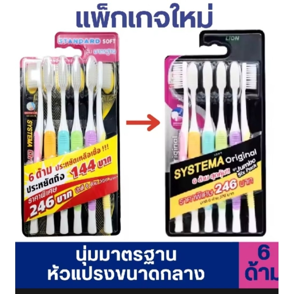 SYSTEMA แปรงสีฟัน ซิสเท็มมา รุ่น ออริจินัล นุ่มพิเศษ แพ็ค 6 LIONSOS