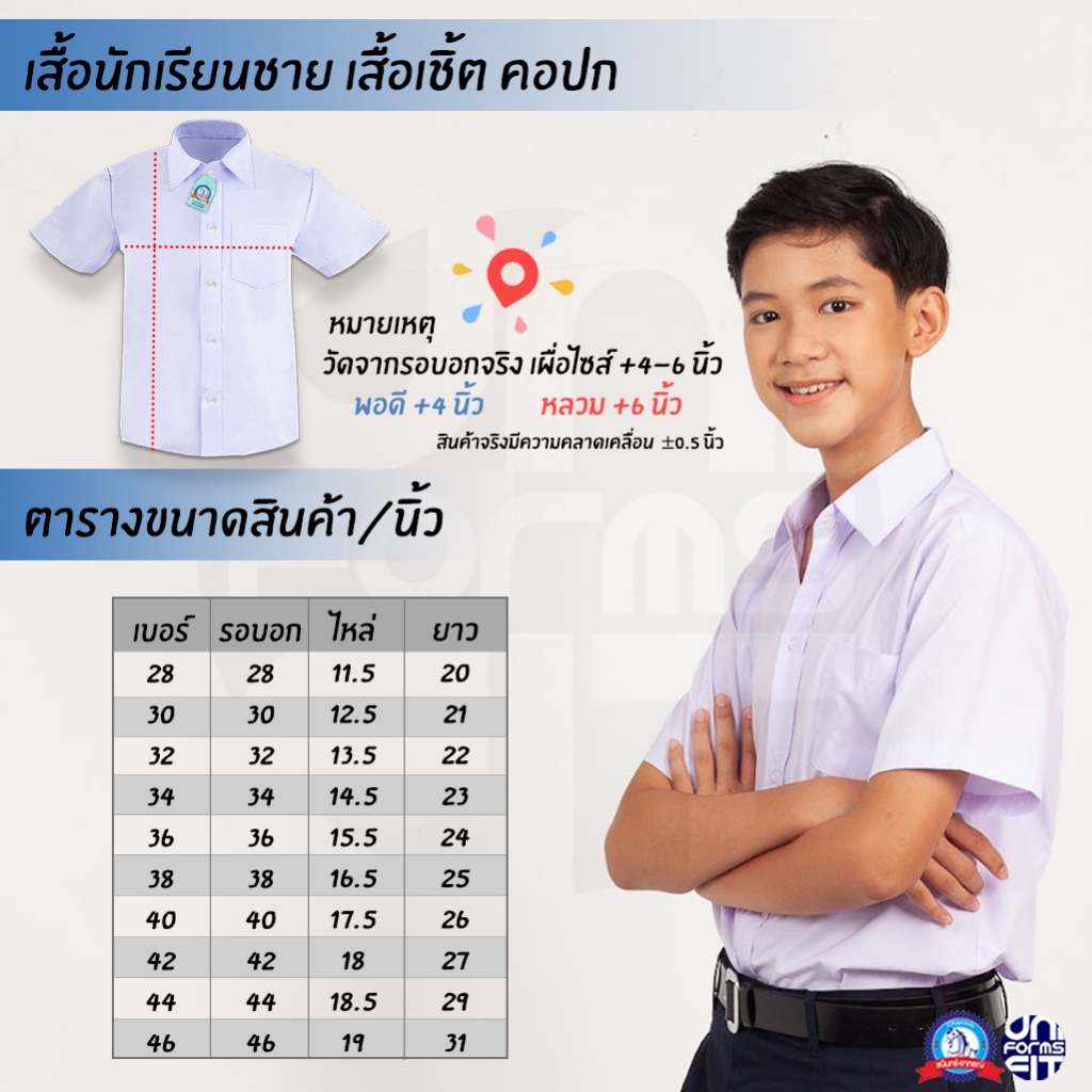 เสื้อนักเรียนชาย ชุดนักเรียน เสื้อเชิ้ตนักเรียน ประถม มัธยม ตราชนินทร์อาภรณ์ เบอร์ 28-46