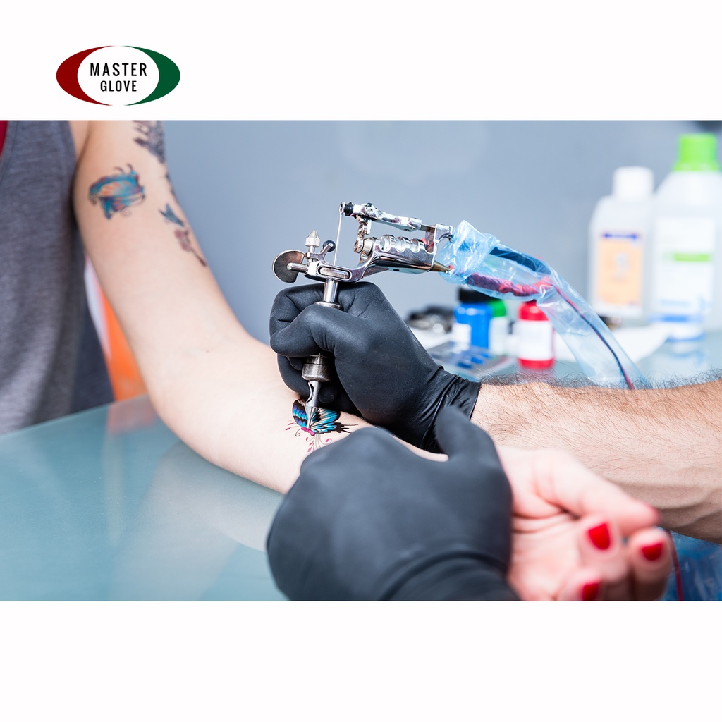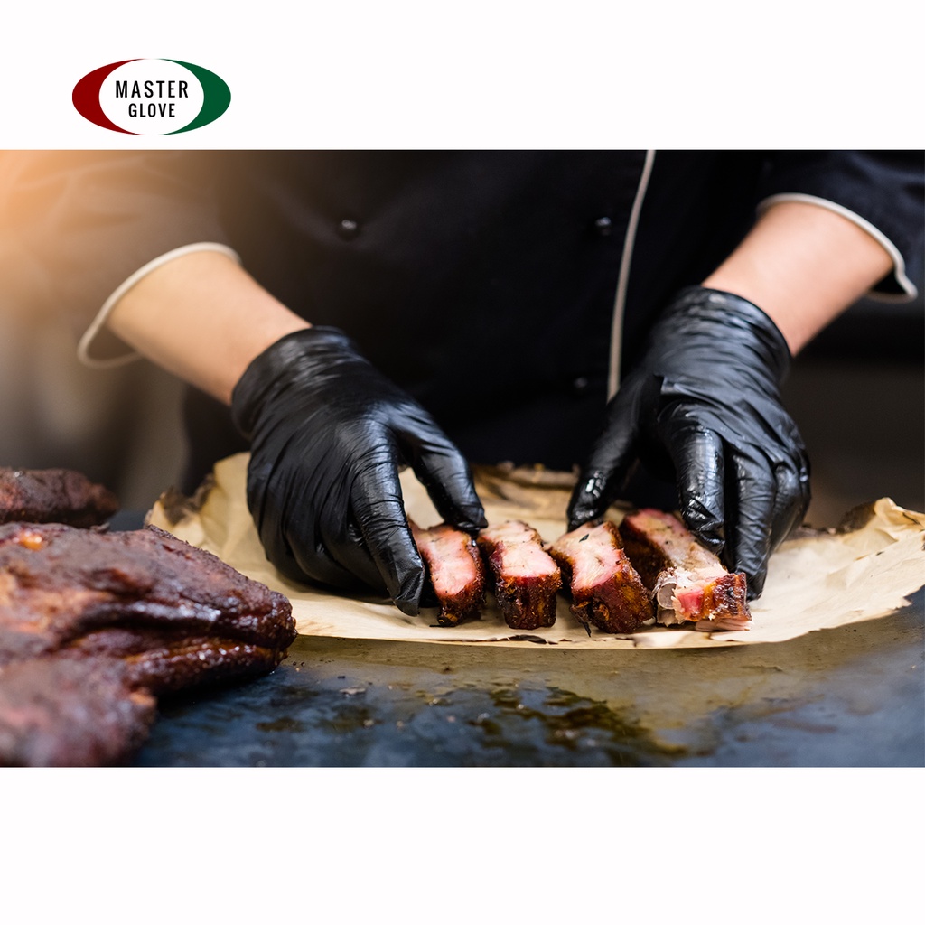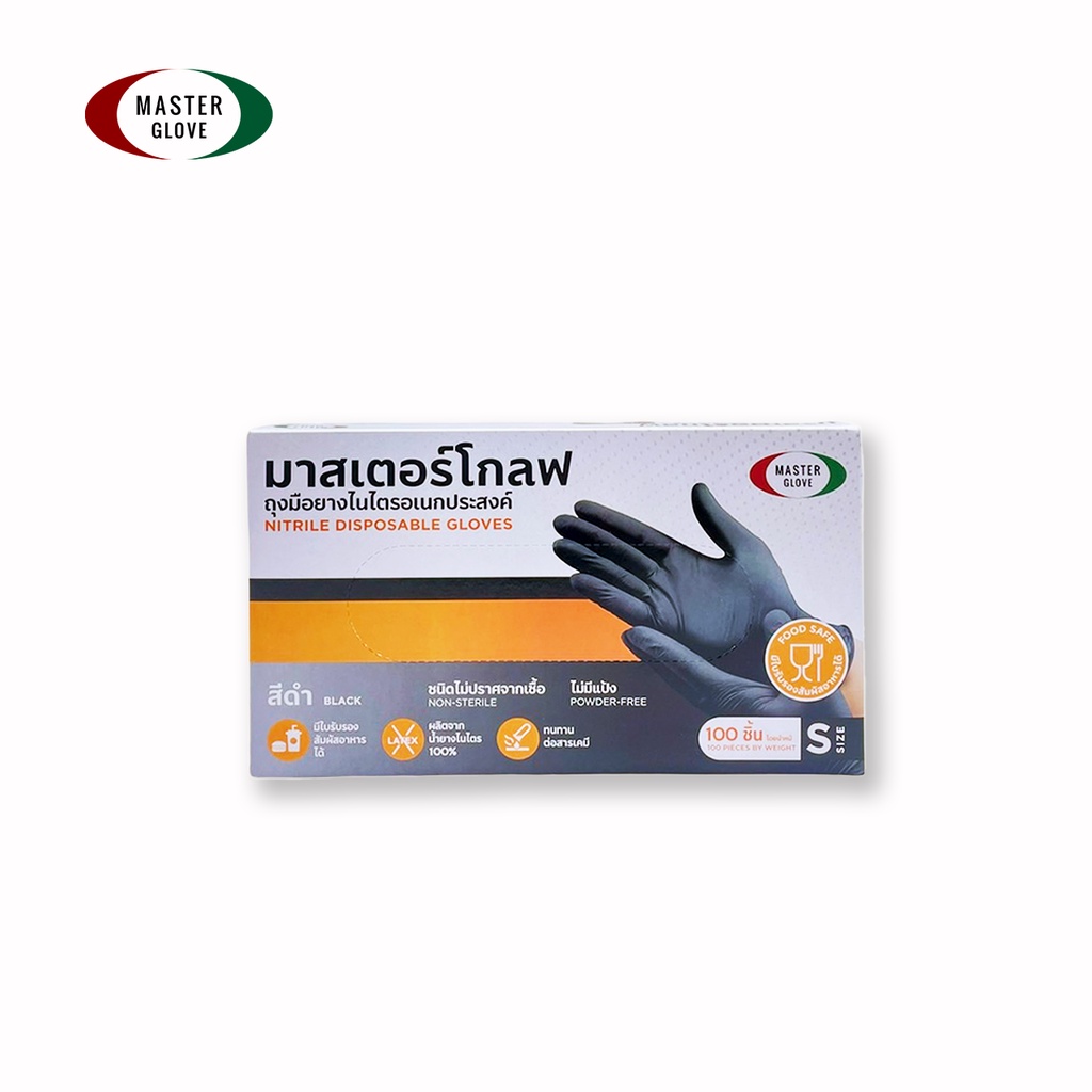 ถุงมือไนไตร สีดำ 100 ชิ้น หนา3.5 กรัม ไร้แป้ง (Food Safe) ถุงมือสัก // MASTER GLOVE