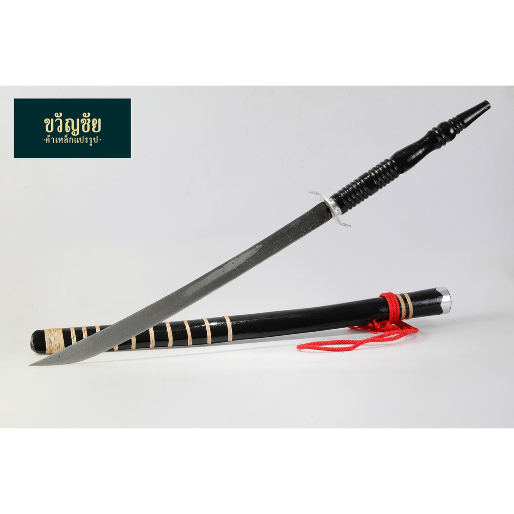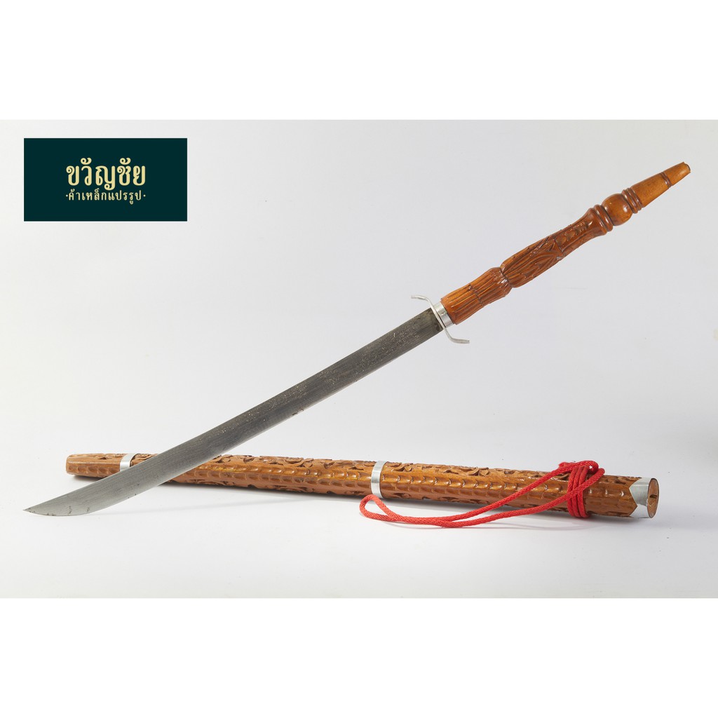 ดาบคาดหวาย (1ชิ้น) ดาบไม้โบราณ ดาบไทย ดาบโชว์ ดาบรำ ดาบแก้บน ดาบสะสม ตกแต่งบ้าน ฝักดาบประดับด้วยหวายถักแท้
