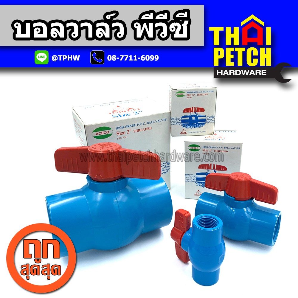 บอลวาล์วพีวีซี แบบเกลียว TF ขนาด 2" (2 นิ้ว) Ball Valve PVC ผลิตในไทย