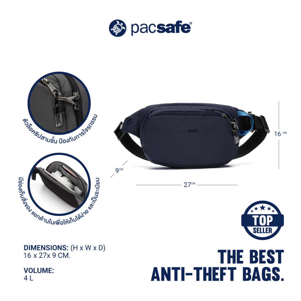 Pacsafe V HIP PACK (VIBE 100 WAISTPACK) ANTI-THEFT กระเป๋าคาดเอว กระเป๋ากันขโมย กระเป๋าคาดอก