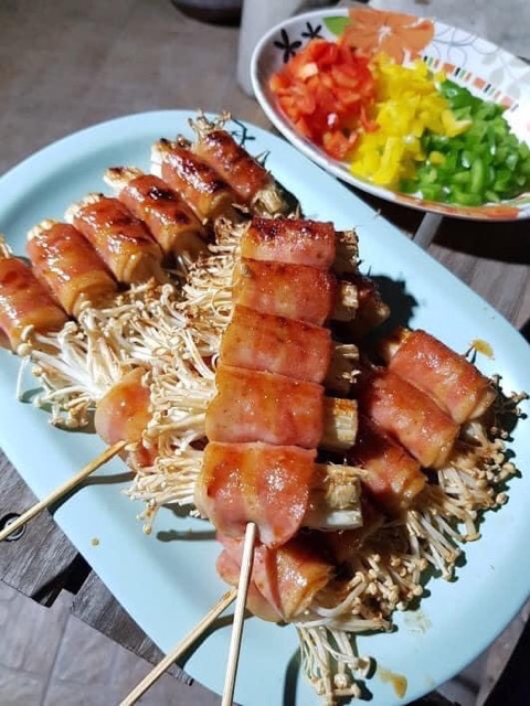 เบค่อนไก่สามชั้นฮาล้าลไก่แผ่นสปาเก็ตตี้breakfast500กรัม