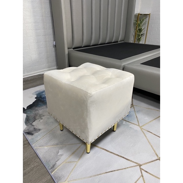 เก้าอี้สตูลตัวสั้น/ขาเหล็กทอง/ผ้ากำมะหยี่เบาะนุ่มมาก/รุ่นซาร่า