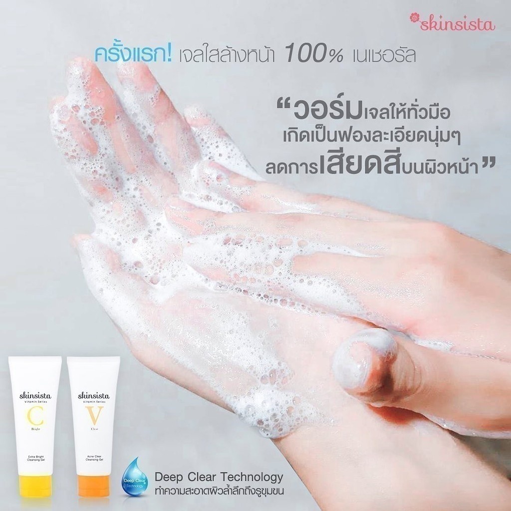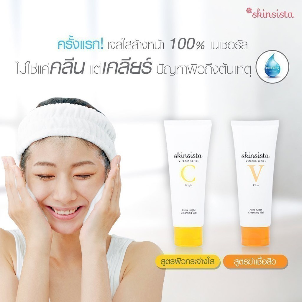 [เซตคู่] Skinsista เจลล้างหน้า สูตร ลดสิว และ สูตร ผิวใส อ่อนโยน ต่อ ผิวแพ้ง่าย V Clear + Vit C 100 ml.