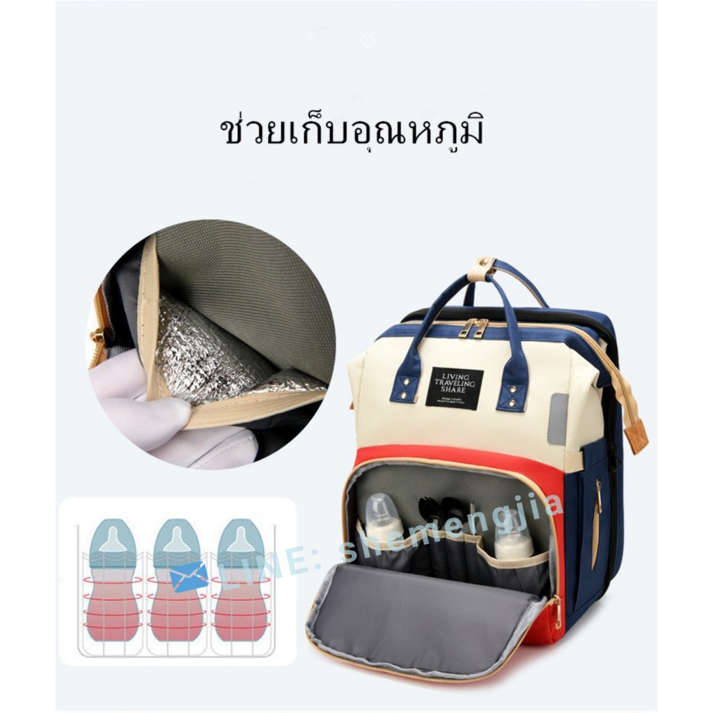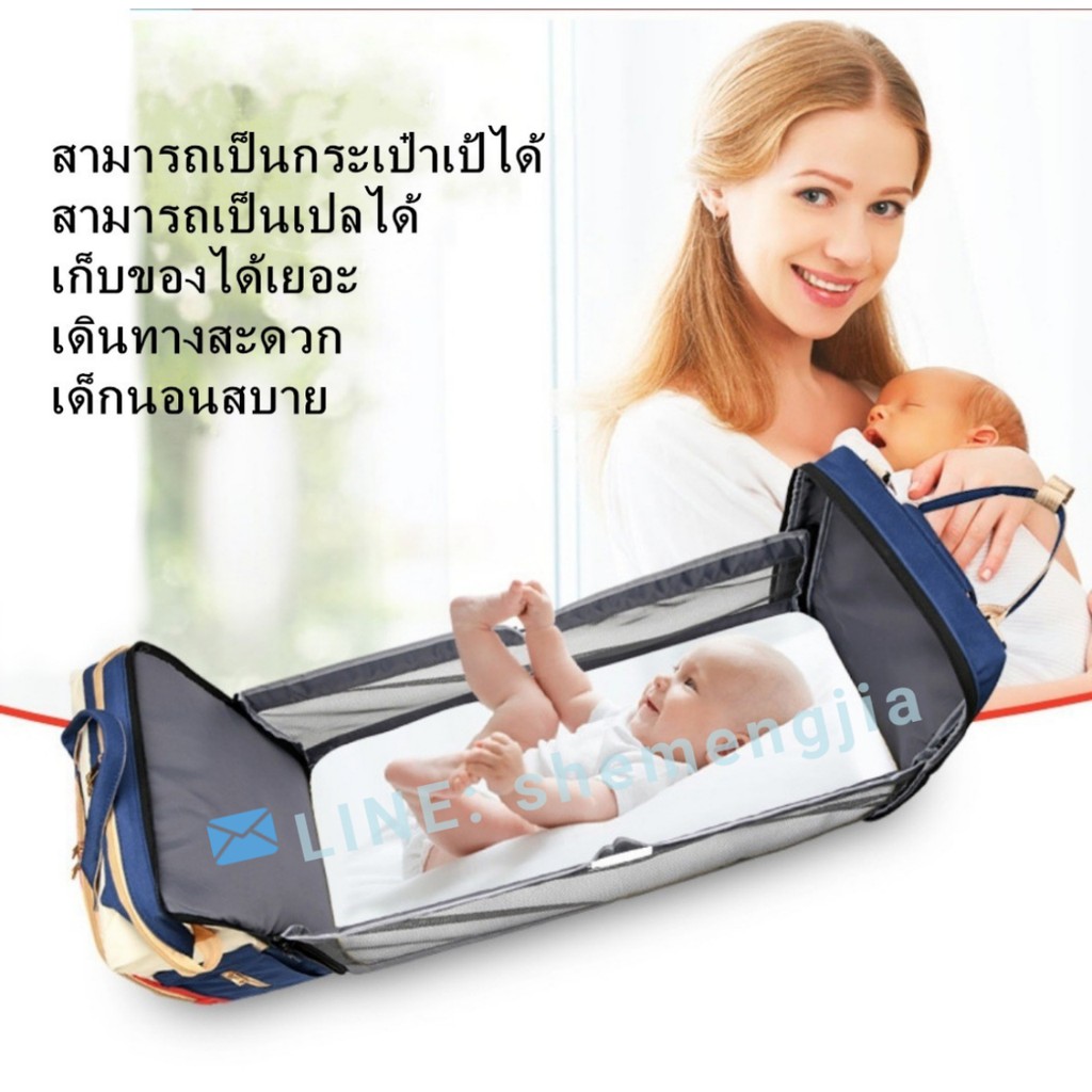 กระเป๋าแม่ลูกอ่อน-ใส่ผ้าอ้อม-ขยายเป็นเตียงพับสำหรับทารกได้-ความจุขนาดใหญ่-สินค้าอยู่ไทยพร้อมส่ง
