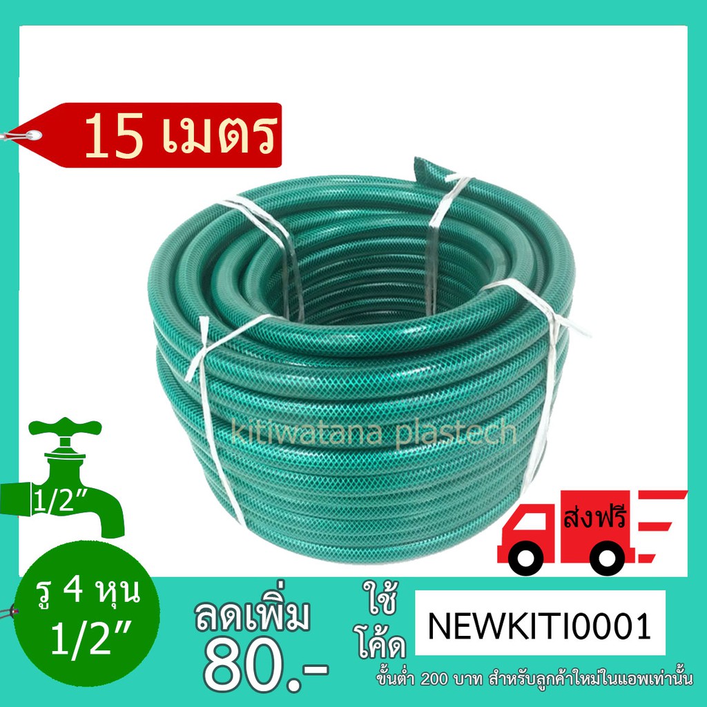 Shiyoda ส่งฟรี! สายยางใยเชือกสีเขียว 1/2”(4หุน) ยาว15ม ทนแรงดัน ไม่รั่วไม่แตก ป้องกันตะไคร่น้ำ ใช้ยาว10ปี [GH12-01-15]