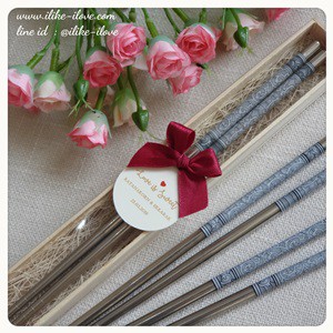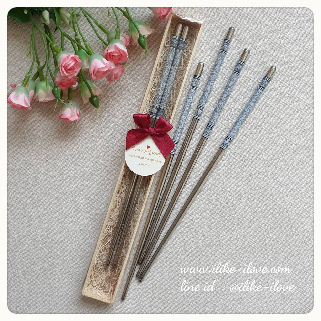 [เซตละ50ชิ้น] ของชำร่วยงานแต่ง ตะเกียบหลุยส์แพ็คกล่องไม้