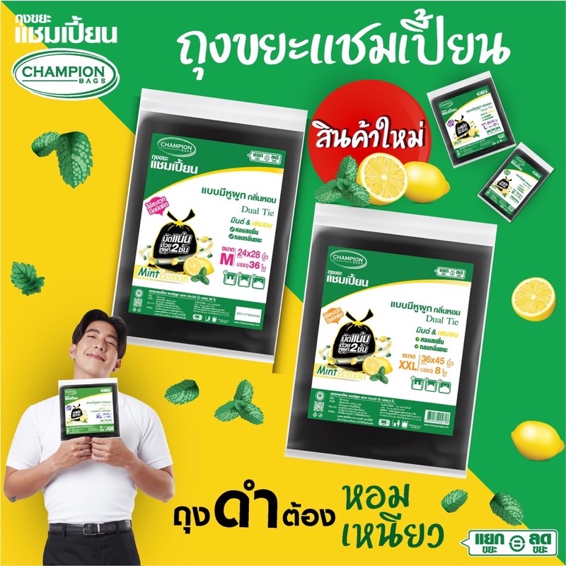 ถุงขยะดำแบบมีหูผูก กลิ่นมินต์&เลมอน 🍋🍋 มี5 ขนาด ถุงเหนียว ช่วนกลบกลิ่นขยะ มัดผูกปากถุงปิดมิดชิด