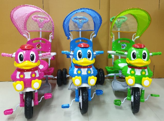 รถจักรยานสามล้อเป็ด แพนด้า หมี 2in1 ทั้งเป็นรถเข็น เป็นทั้งจักรยาน มีกันน้องตก มีด้ามเข็น มีร่มบังแดด มีเพลง ของเล่นเด็ก