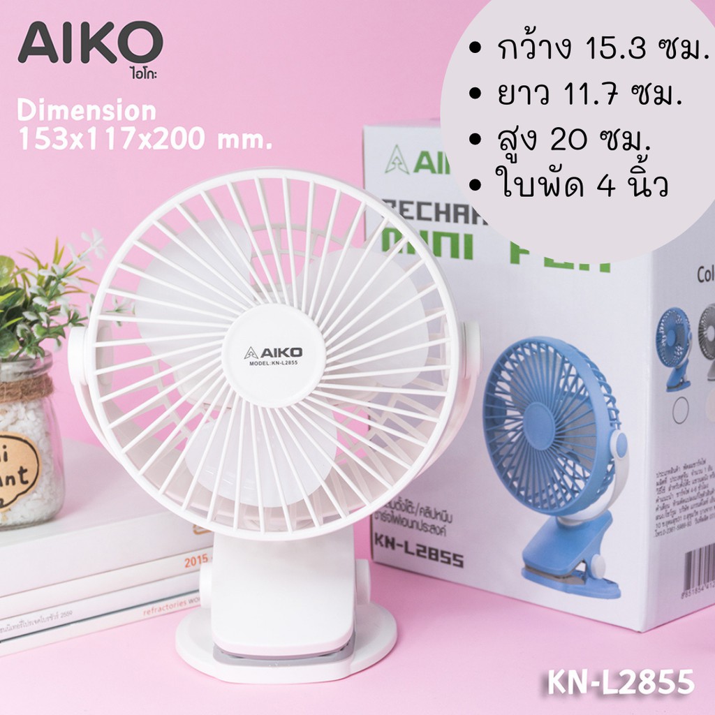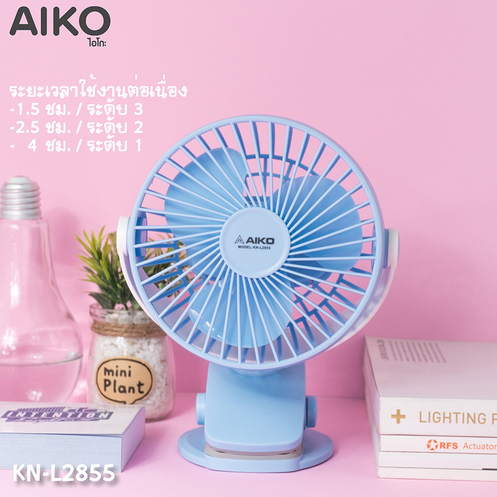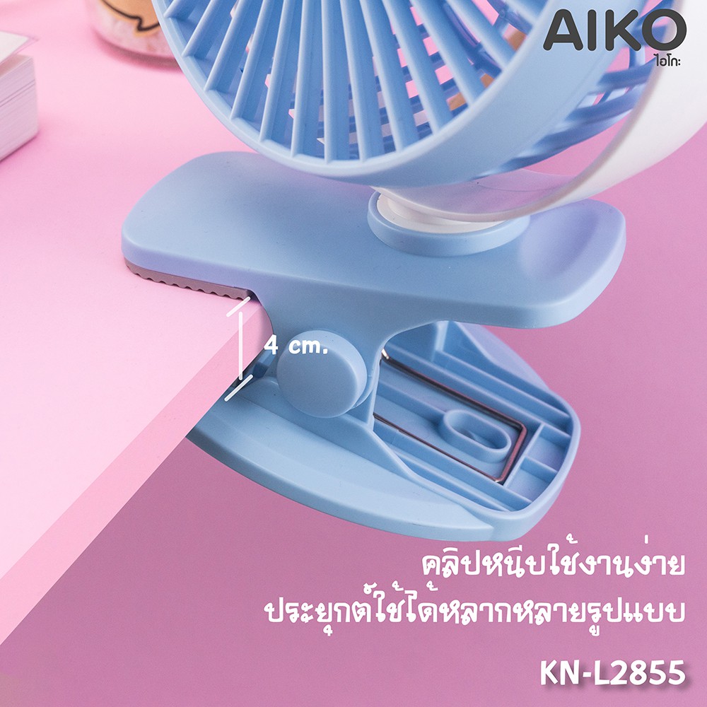 AIKO KN-L2855 พัดลมชาร์จไฟ ใบพัด 4 นิ้ว ชาร์จด้วย USB พัดลมพกพา พัดลมใช้แบตเตอรี่