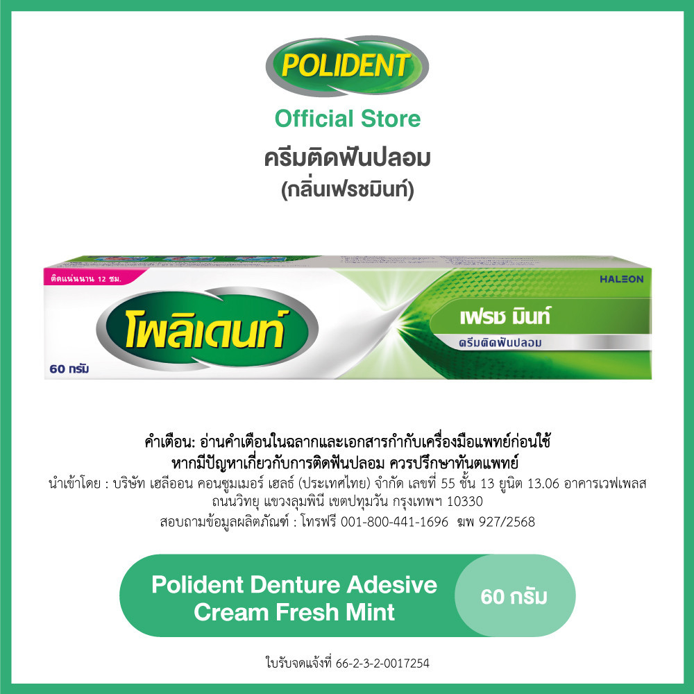 POLIDENT DENTURE ADHESIVE CREAM FRESH MINT 60G โพลิเดนท์ ครีมติดฟันปลอม สูตรเฟรช มิ้นท์ 60 กรัม