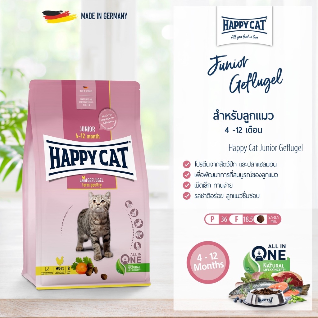 Happy Cat - Junior Geflugel | Atlantik Lachs | Indoor | Sterilized อาหารแมว เกรด Premium บำรุงครบทุกอย่างในถุงเดียว 10kg