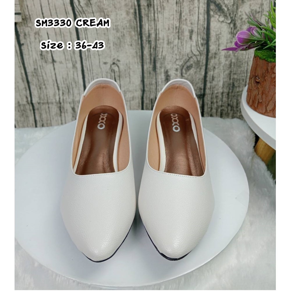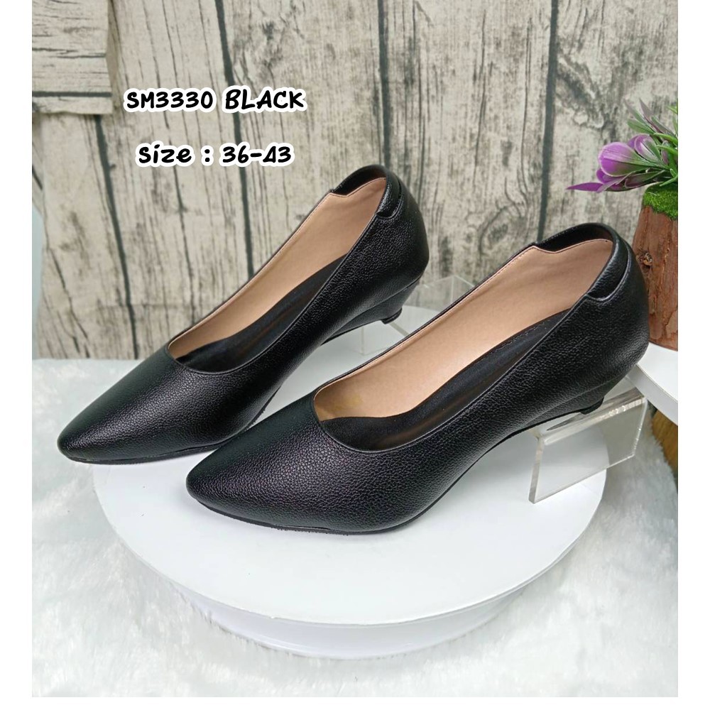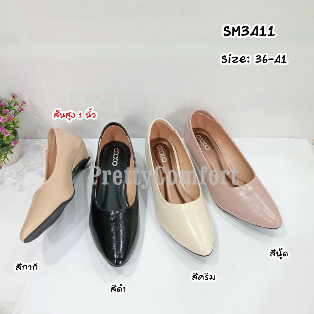 prettycomfort รองเท้าคัทชู ผู้หญิง ทรงหัวแหลม สูง1นิ้ว ส้นกันลื่นตอกมือ หนังพียู SM3330 SM3411