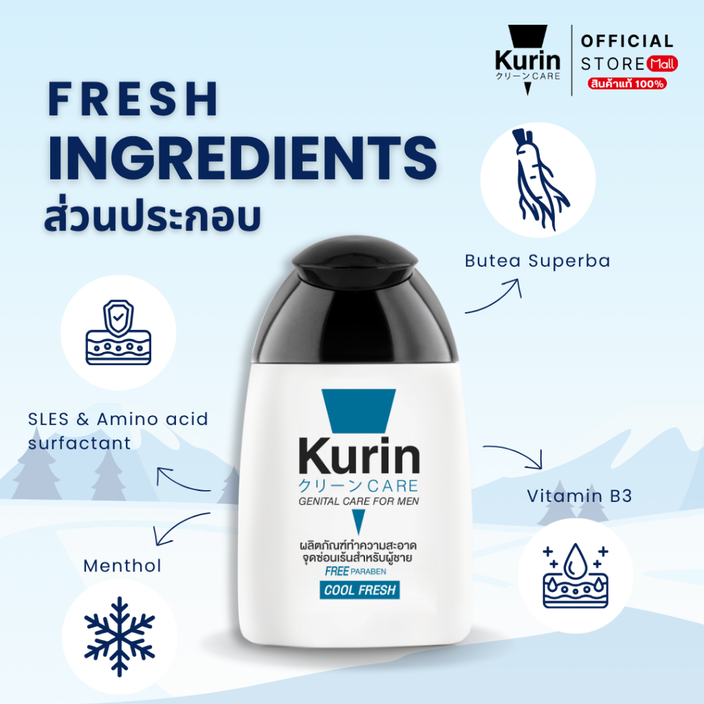 Kurin Care เจลทำความสะอาดจุดซ่อนเร้นชาย ( เจลล้างจุดซ่อนเร้น ) สูตรเย็น (ขนาด 90 ม.)