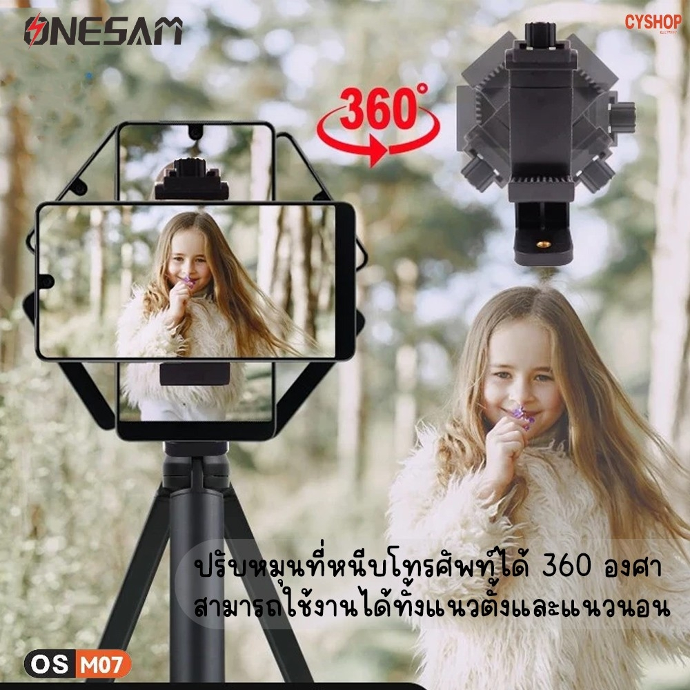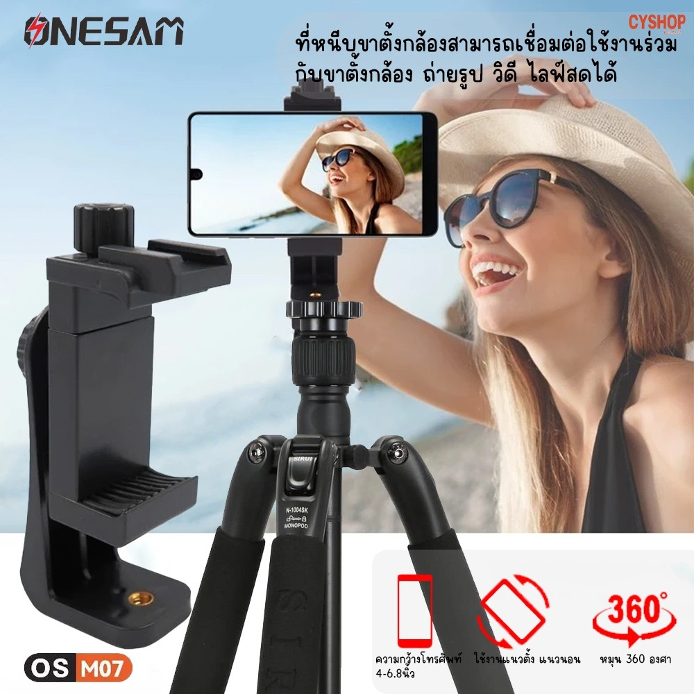 ที่หนีบโทรศัพท์มือถือ ONESAM M07 หมุนได้ 360 องศา ต่อกับขาตั้งกล้องถ่ายรูป/อัดวิดีโอ/ไลฟ์สด