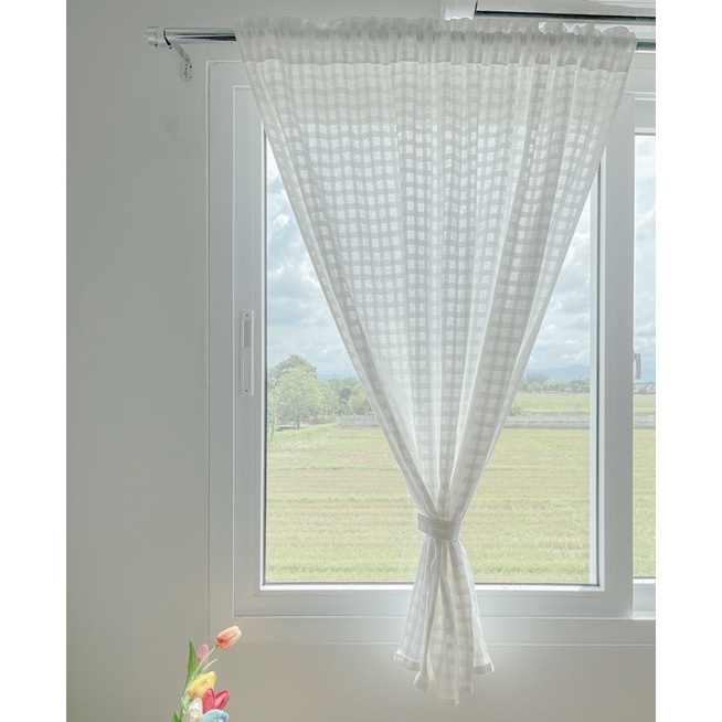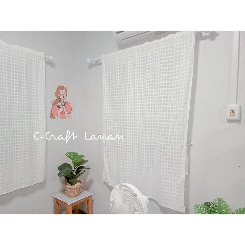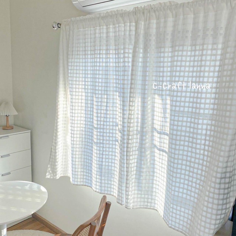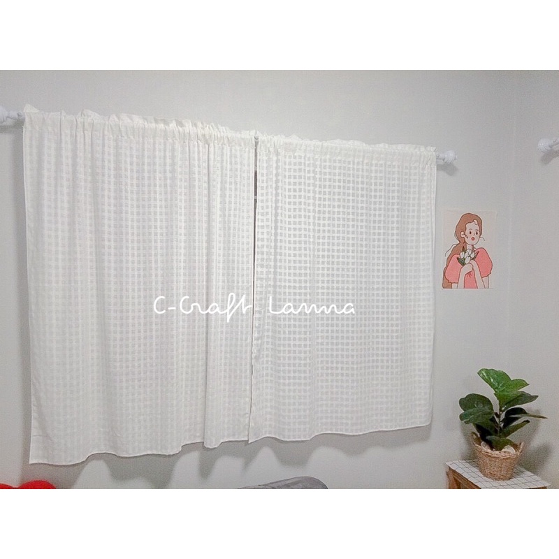 ผ้าม่านหน้าต่างมินิมอลผ้าตารางสีขาวขนาดกว้าง110สูง150cmผลิตด้วยผ้าฝ้ายเกรดดีสวยงามมากTTS150