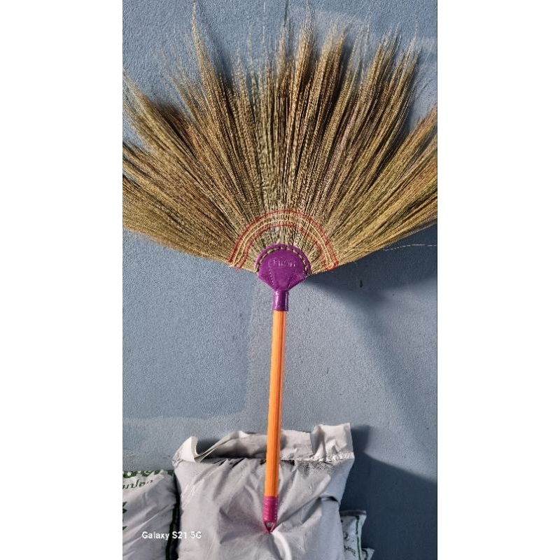ไม้กวาดดอกหญ้าพกพาด้ามพลาสติกคละสีด้ามสั้นนะค่ะ