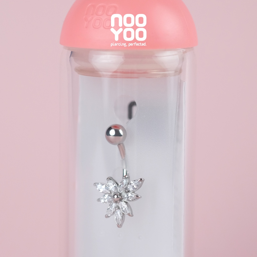 NooYoo จิวสะดือสำหรับผิวแพ้ง่าย Marquise CZ (สีขาว/สีทอง)