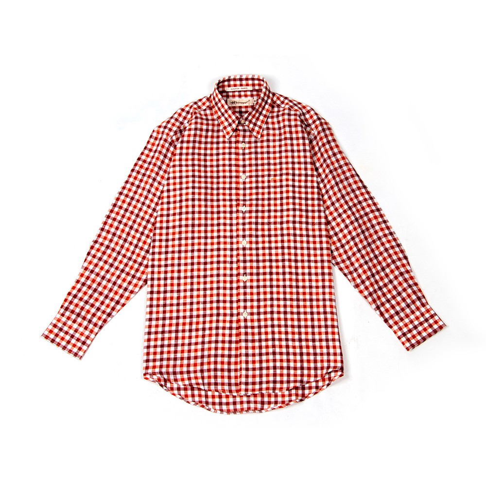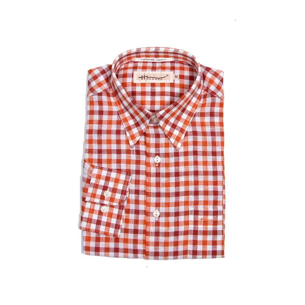Hazard เสื้อเชิ้ตทำงานแขนยาวลายสก็อต ผ้า Linen(ลินิน) สีส้มกลาง