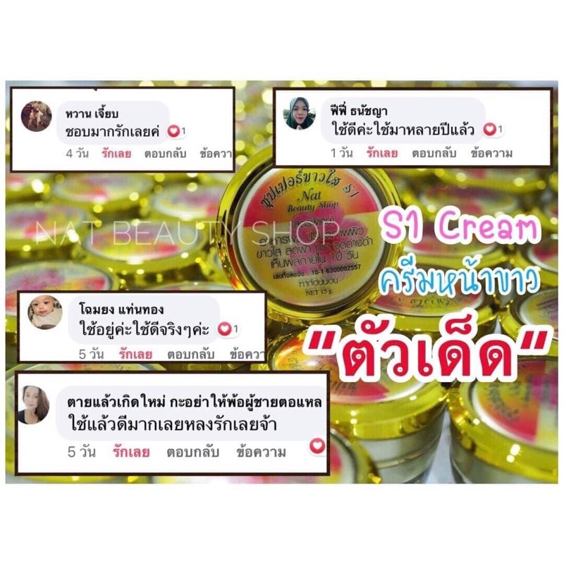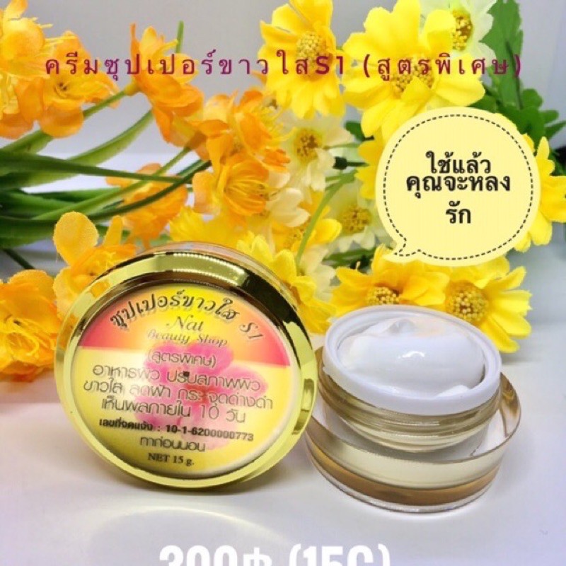 ครีมเอสวัน S1 ซุปเปอร์ขาวใส ผิวขาวใสขึ้นจริง ปลอดภัยไร้สารปรอท ขนาด 15 กรัม