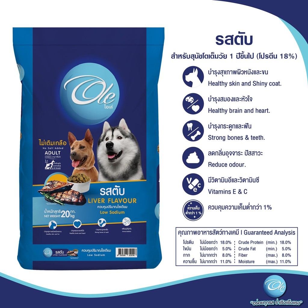 Ole (โอเล่) รสตับ 1 สี อาหารเม็ดสำหรับสุนัข อายุ 1 ปีขึ้นไป ขนาด 10 KG