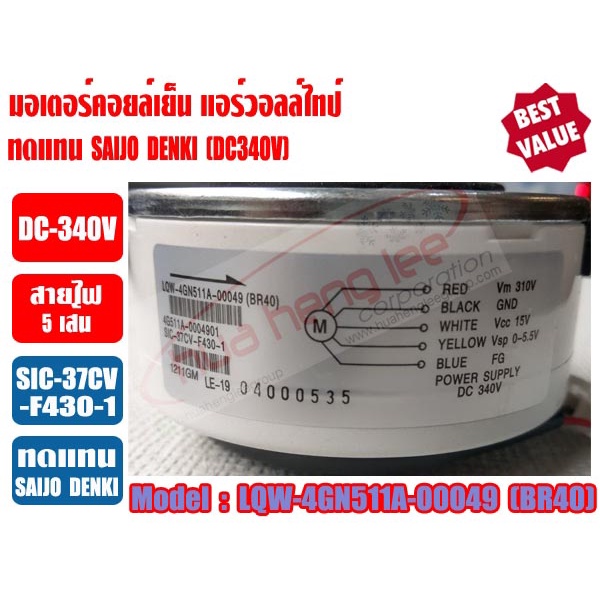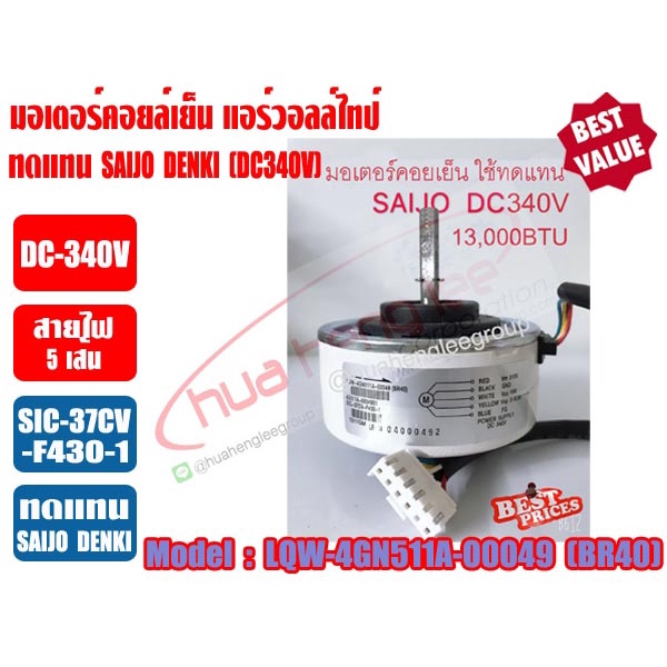 มอเตอร์คอยล์เย็น แอร์วอลล์ไทป์ SAIJO DENKI (DC340V) 13000BTU (สีขาว) รุ่น 4GN511A-00049