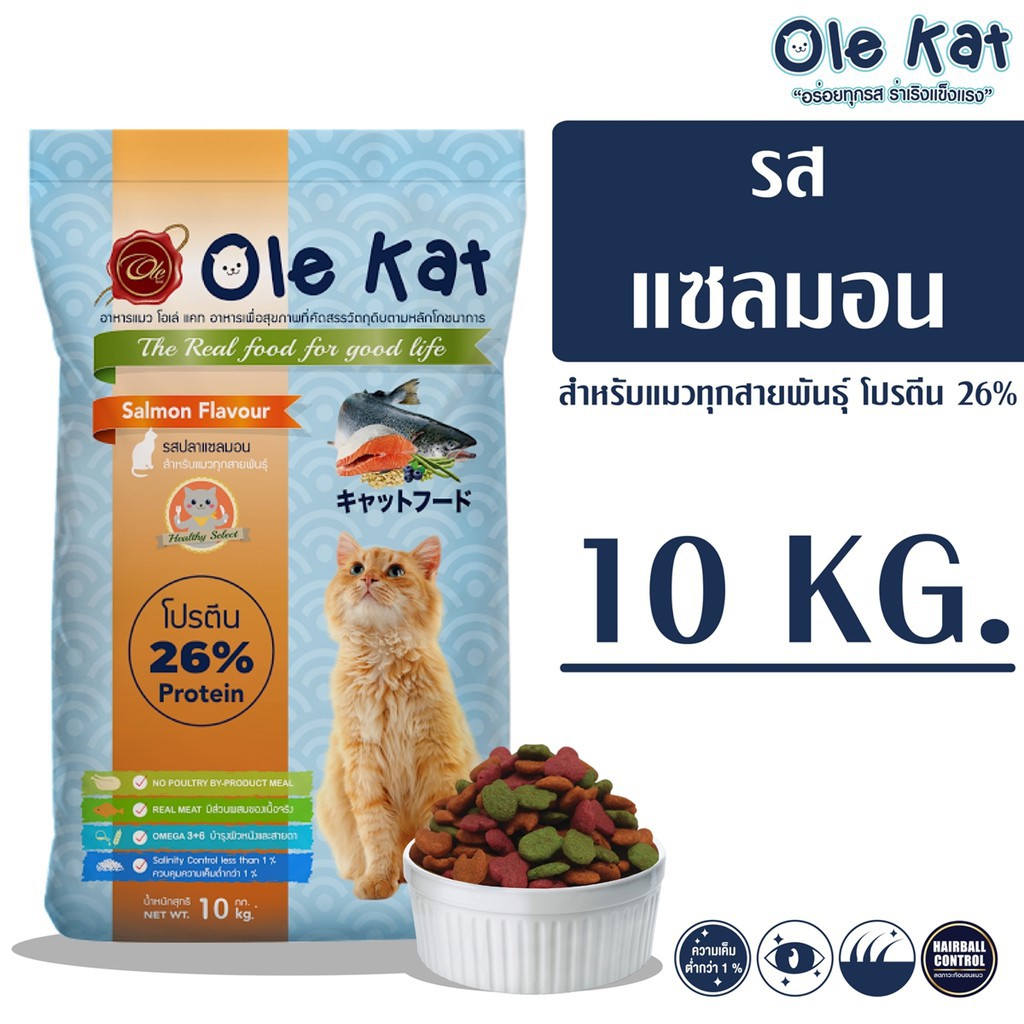Ole Kat โอเล่ แคท รสแซลมอน 3 สี อาหารเม็ดสำหรับแมว อายุ 1 ปีขึ้นไป ขนาด 10 KG