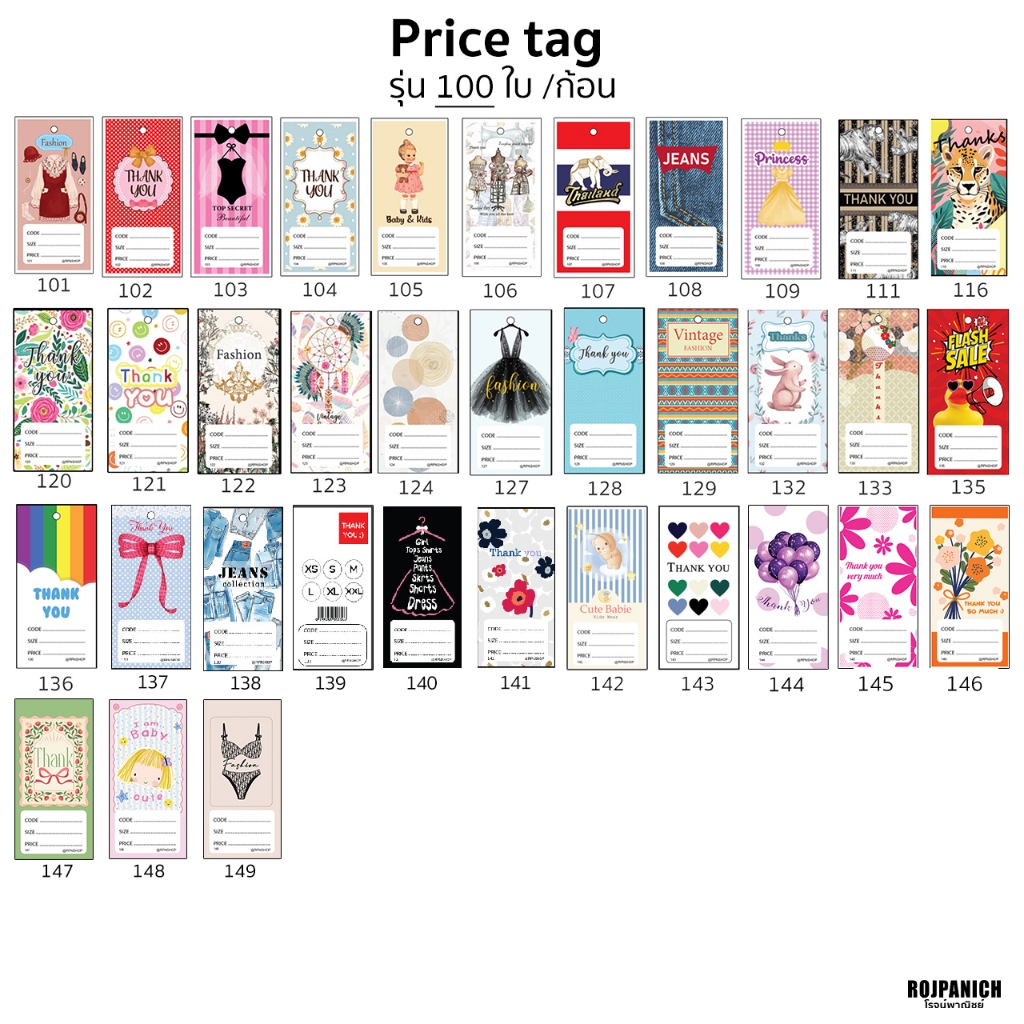 [[Price tag]] ก้อนละ100ใบ/ก้อน200ใบ ป้ายราคา ป้ายเสื้อ tagเสื้อ หนวดกุ้ง