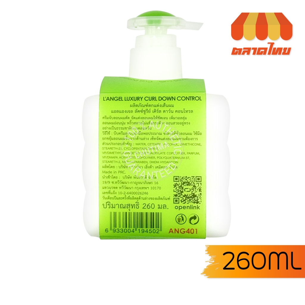 ครีมจับลอนผม แอลแองเจล แต่งลอนผมดัด L'ANGEL Luxury Curl Down Control ANG401 260ml.