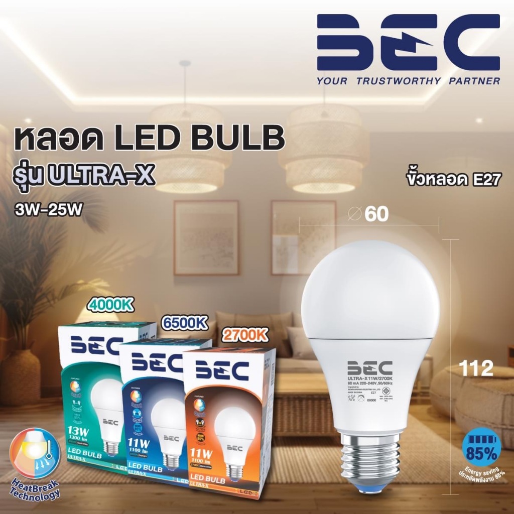 BEC หลอดไฟ LED 3W 5W 7W 9W 11W 13W 15W 18W 20W 25W Ultra