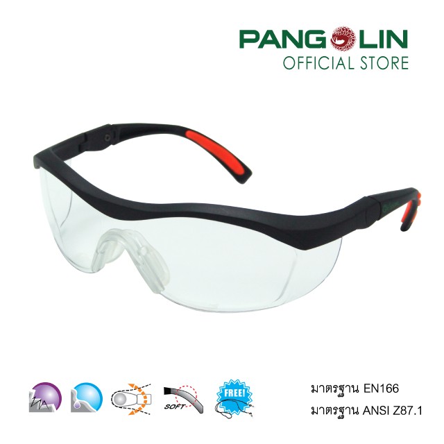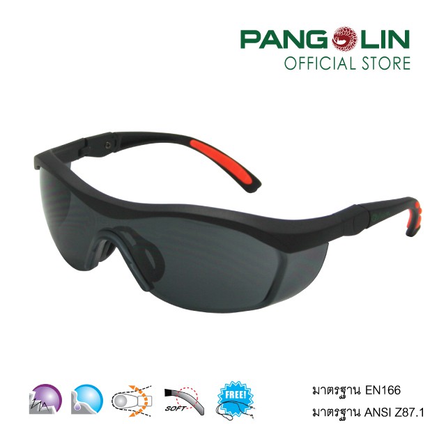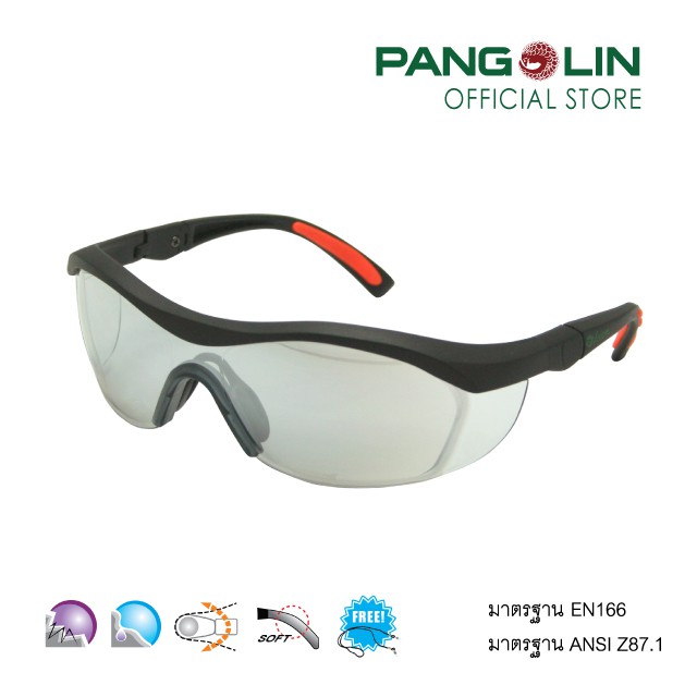 แว่นตานิรภัย แว่นตาเซฟตี้ Pangolin (แพงโกลิน) รุ่นGLSS0101-0103 (J-13S-2) เลนส์ใส เทา ปรอท