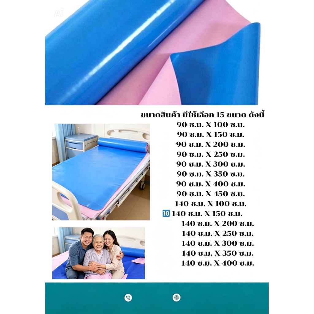 ✅คุ้มสุดๆ✅ ผ้ายางปูเตียงผู้ป่วย ผ้ายางรองฉี่ 2 หน้าฟ้าชมพู