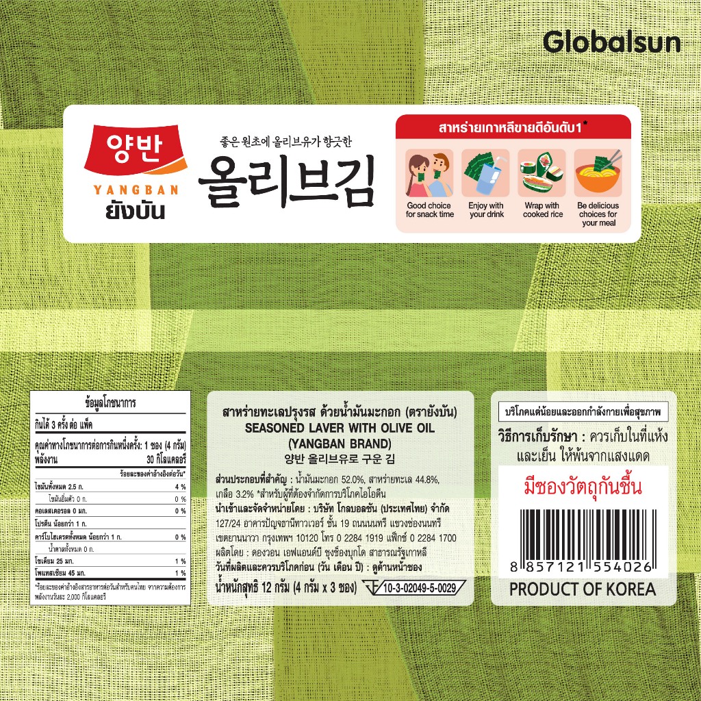 [โปรครึ่งลัง] YANGBAN สาหร่ายทะเลปรุงรสด้วยน้ำมันมะกอก (ตรายังบัน)]