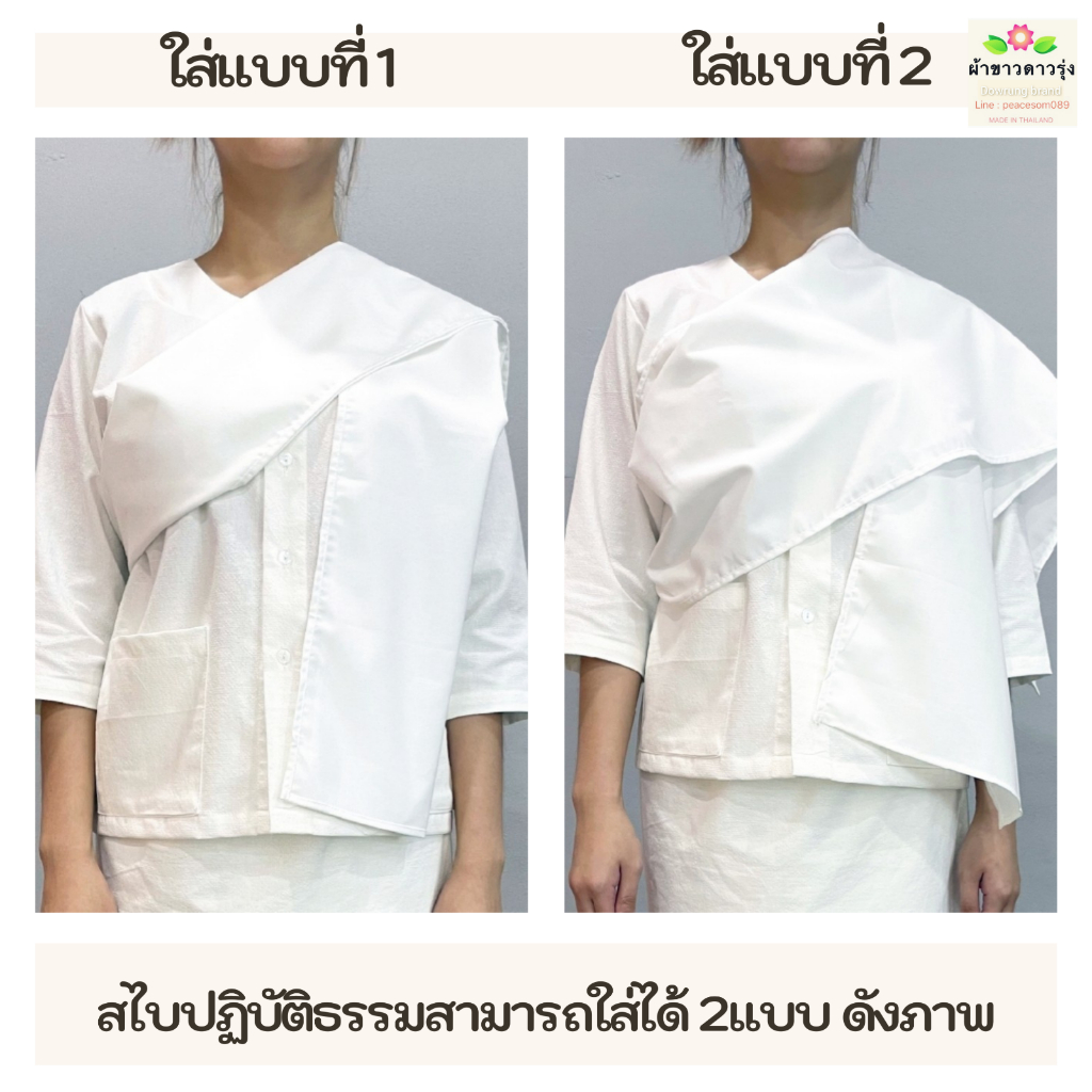 สไบปฏิบัติธรรมผ้าฝ้ายญี่ปุ่นสีขาวนวลโรงทอ(1) ขนาดกว้าง 11 นิ้ว ยาว 1.9 เมตร