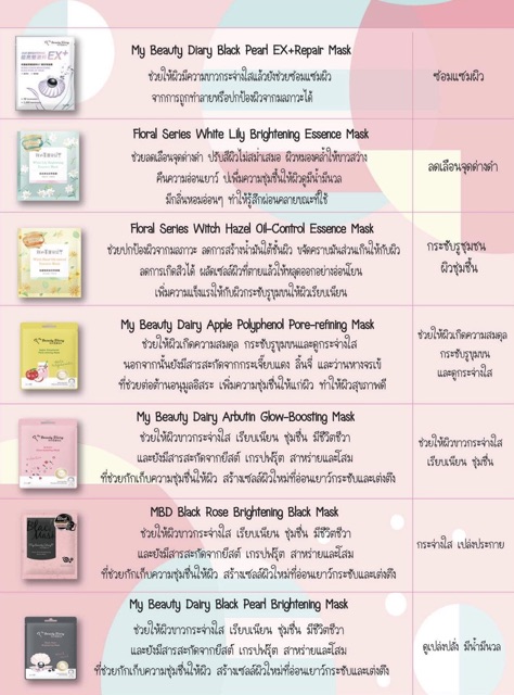 🔥ลดกระหน่ำ ✅ My Beauty Diary มาส์กหน้าไต้หวัน แผ่นมาส์กหน้า หน้าขาวใสเนียน ให้ความชุ่มชื้น ฟื้นฟู