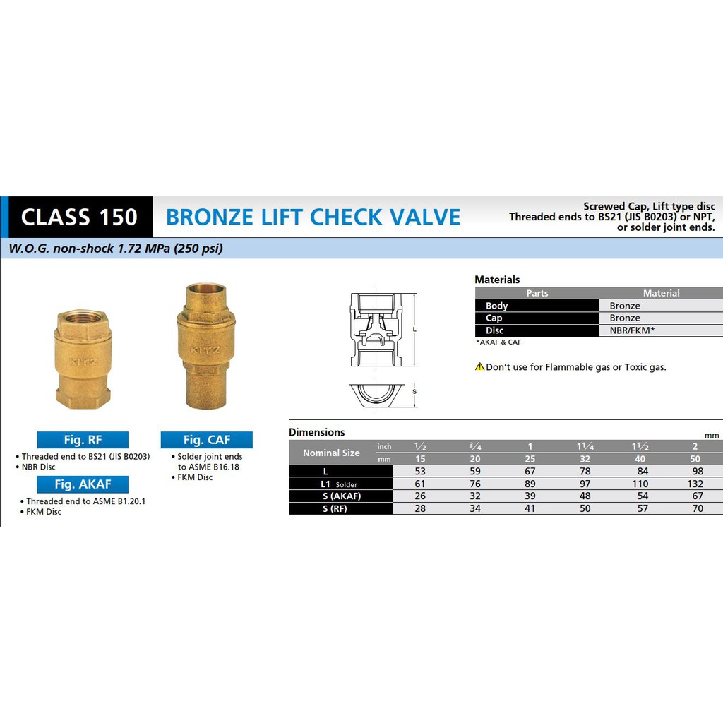ลิฟท์เช็ควาล์ว ทองเหลือง KITZ รุ่น RF 1/2 - 1.1/4 นิ้ว
