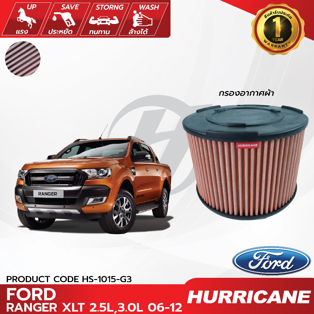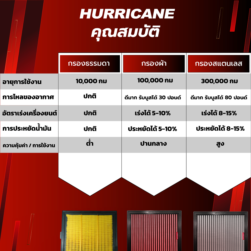 กรองอากาศ Fortuner 00-15, Hilux Vigo 05-14, Ford Ranger XLT 06-12 แบรนด์ HURRICANE มีแบบผ้าแดง & สแตนเลส HS-1015