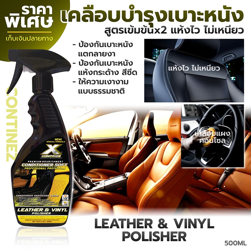 เคลือบเงาเบาะหนัง สเปรย์บำรุงรักษาเบาะหนังและคอนโซล Continez ป้องกันเบาะหนังแห้งซีด แตกลายงา ไม่เหนียวเหนอะหนะ 500ML