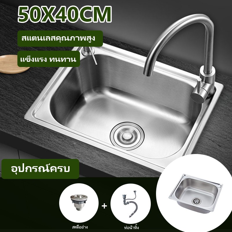 ซิงค์ล้างจาน อ่างล้างจาน 1หลุม วัสดุสแตนเลส ขนาด50x40ซม stainless steel sink รุ่น FS5040