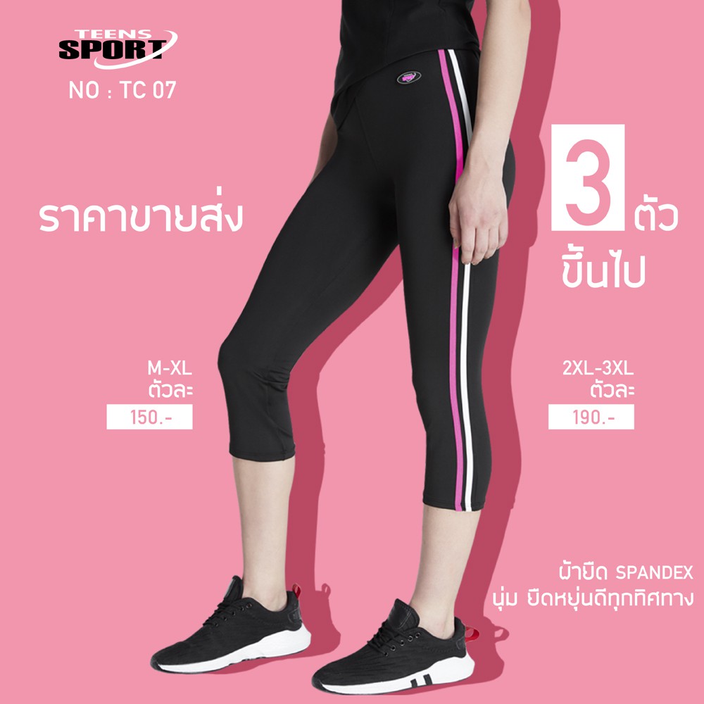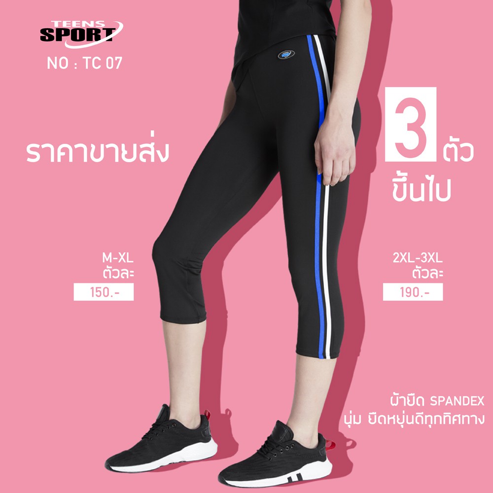 พลัสไซส์! จัดโปรโดนใจ! TC07 กางเกง ออกกำลังกายขาสามส่วน Cotton SpandexTEENS SPORT